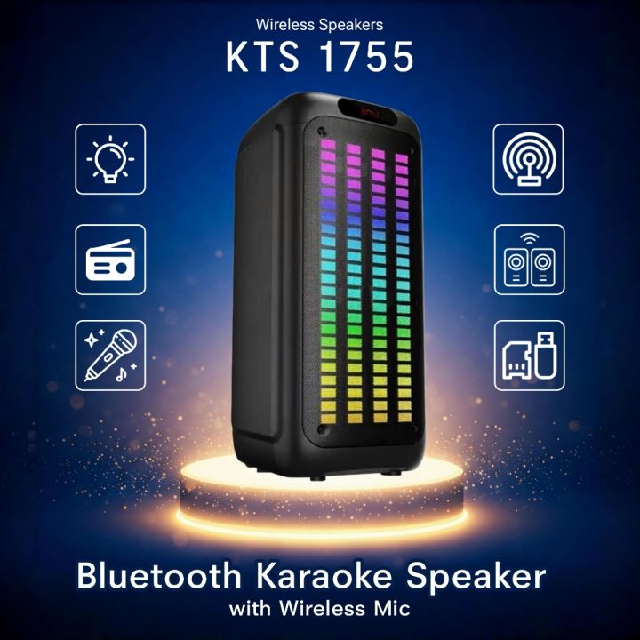 KTS 1755 Bluetooth Karaoke Speaker with Wireless Microphone | 8"x2 Dual Bass