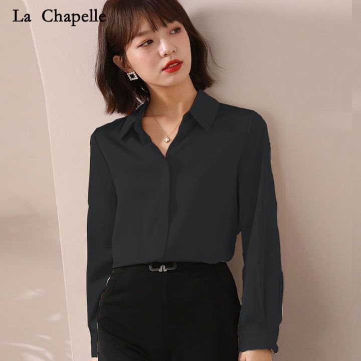 La%20Chabel%20Korean%20Style%20Satin%20White%20Shirt%20Women's%20Long%20Sleeve%202024%20Spring/Summer%20New%20Design%20Sense%20All-Matching%20Top%20-%20Image%201