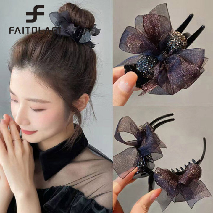 Lace%20Mesh%20Bow%20Hair%20Clip%20for%20Women%20Shiny%20Rhinestones%20High%20Ponytail%20Hairstyle%20Hold%20Hairpins%20Simple%20Elegant%20Korean%20Style%20Female%20Hair%20Accessories%20-%20Image%201