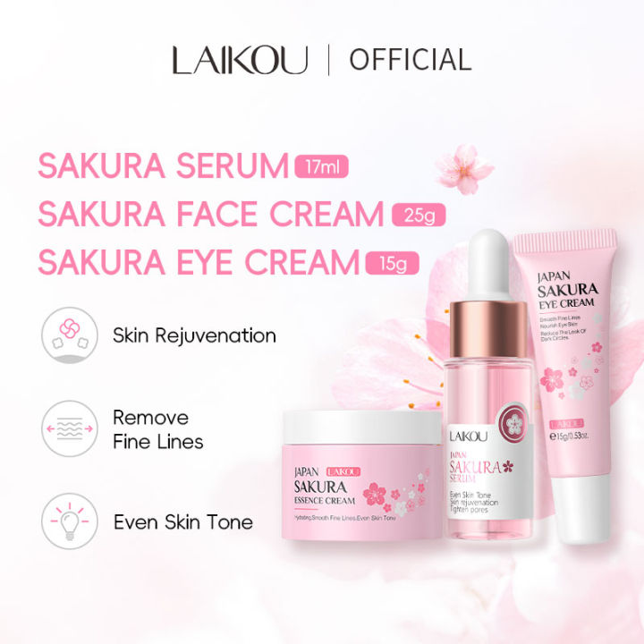 LAIKOU Sakura Skincare Set Serum Eye Cream Face Cream Skin Rejuvenation Shrink Pores Remove Acne 3pcs