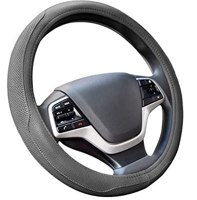 Leather Steering Wheel Cover Universal Fit Soft Breathable Steering Wheel Wrap (Gray))