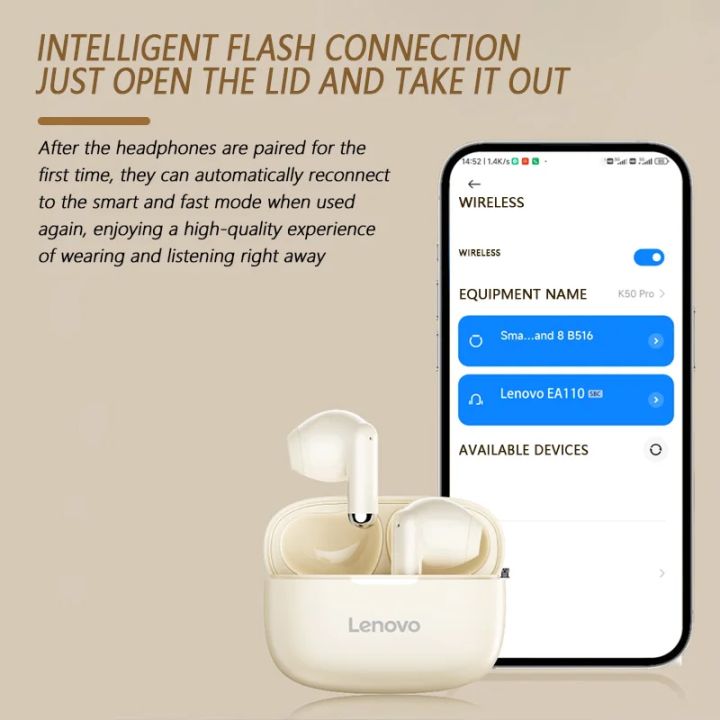 Lenovo EA110 Wireless Headset Bluetooth 5.4 Intelligent Touch Control Headphones Long Lasting Battery Life Support Android ISO