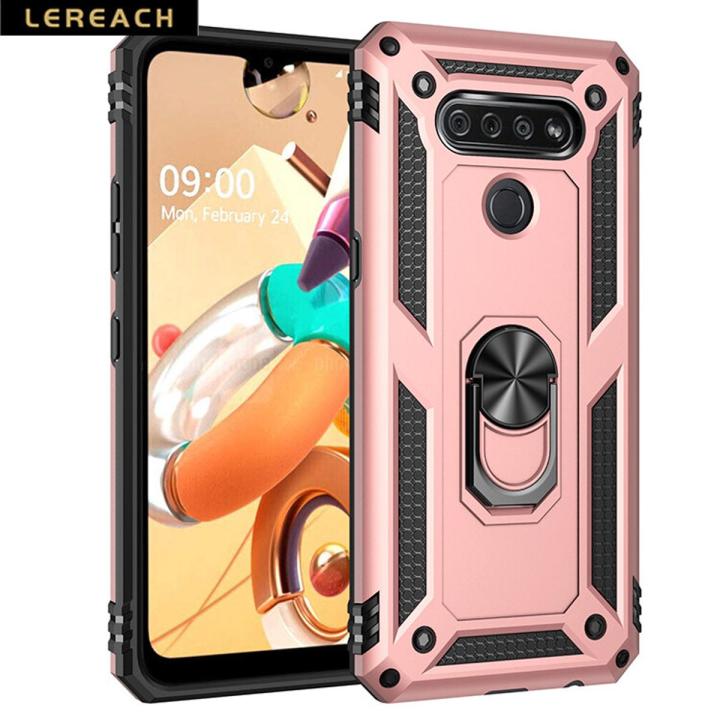 Lereach For LG K51 / Q51 Mobile Phone Case TUP+PC Hard Ring Car Ring Bracket Shockproof Back Cover
