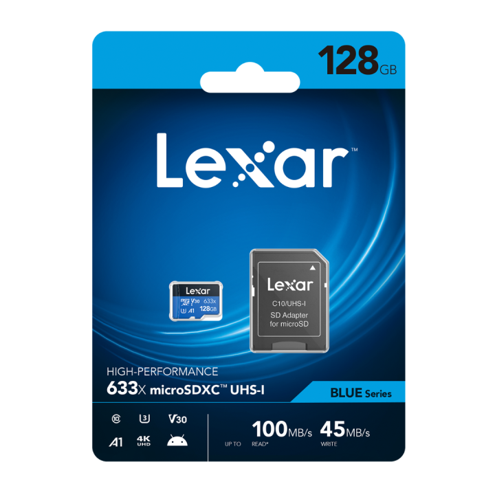 Lexar%20128GB%20Genuine%20Class%2010%20microSD%20633x%20(100MB/s)%20U1%20UHS-I%20A1%20memory%20card%20for%20your%20Mobile,%20Drone,%20Action%20Camera%20128%20GB%20Micro%20Chip%20SD%20Card%20-%20Image%201