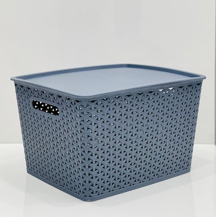 Lidded Storage Bins, Plastic Stackable Weaving Wicker Basket Containers set with Lid and Handle