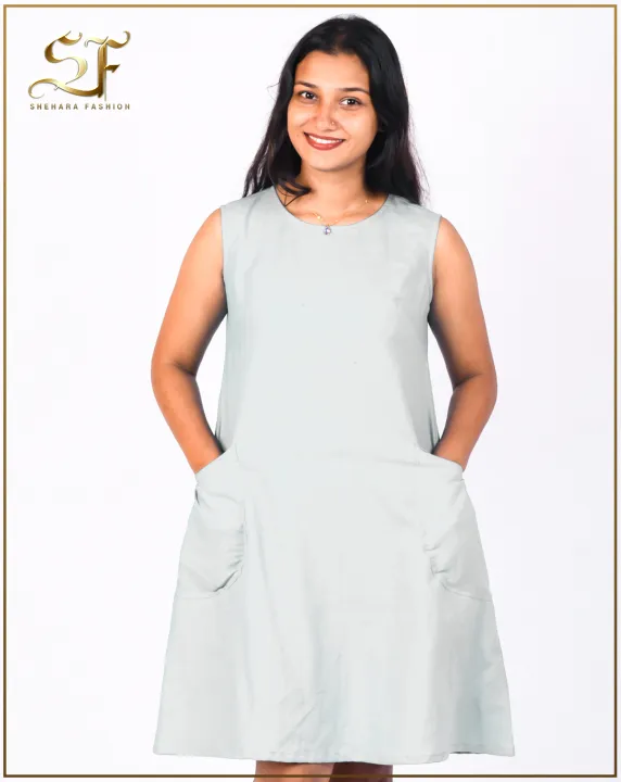 Linen A-Line Dresses with Side Pockets for Women's