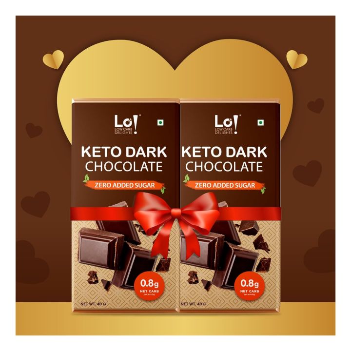 Lo! Foods - Dark Keto Chocolates - 80g | No Added Sugar | Only 0.8g Of Net Carbs Per Serving | Guilt Free Chocolate for Indulgence | Valentine's Chocolate Gift of Dark Chocolates Pack of 2 FROM INDIA (ABR)