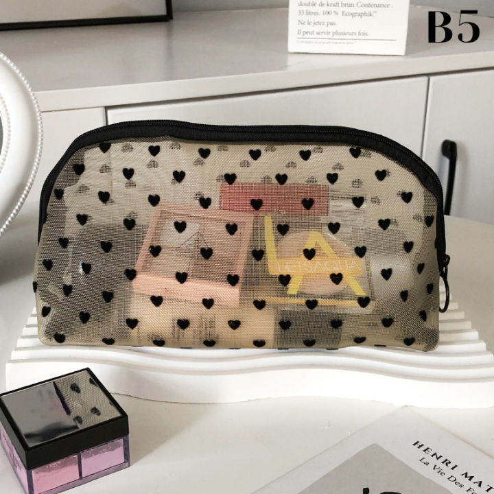 Love Print Mesh Cosmetic Bag Portable Toiletry Organizer Makeup Bag Multifunction Transparent Women Lipstick Storage Pouch