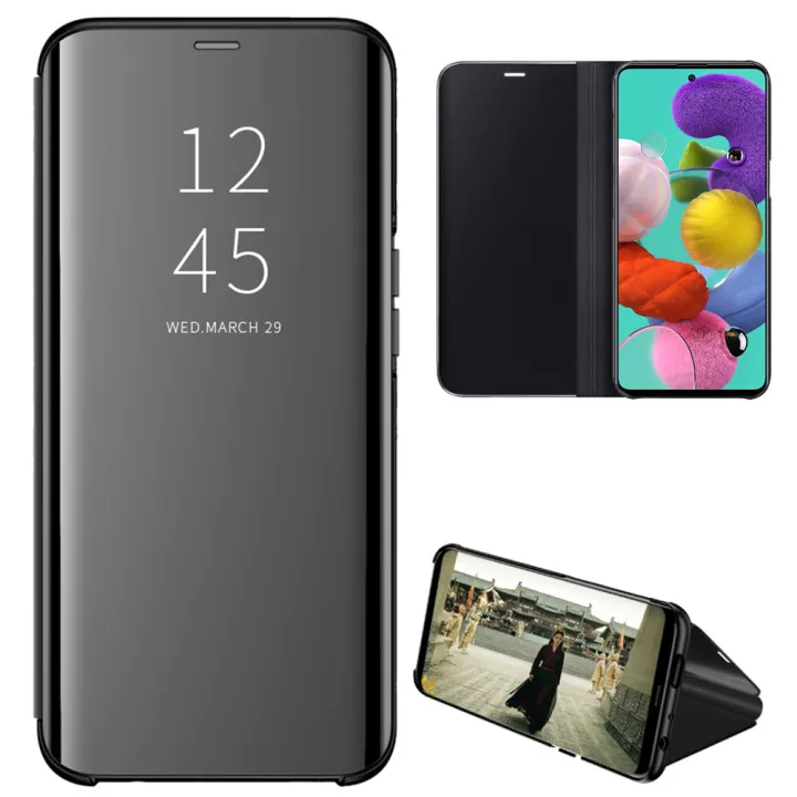 lthmy%20for%20Samsung%20Galaxy%20A51%20Mirror%20Plating%20Hard%20PC%20PU%20Leather%20Semi%20transparent%20Standing%20View%20Case%20Cover%20-%20Image%201