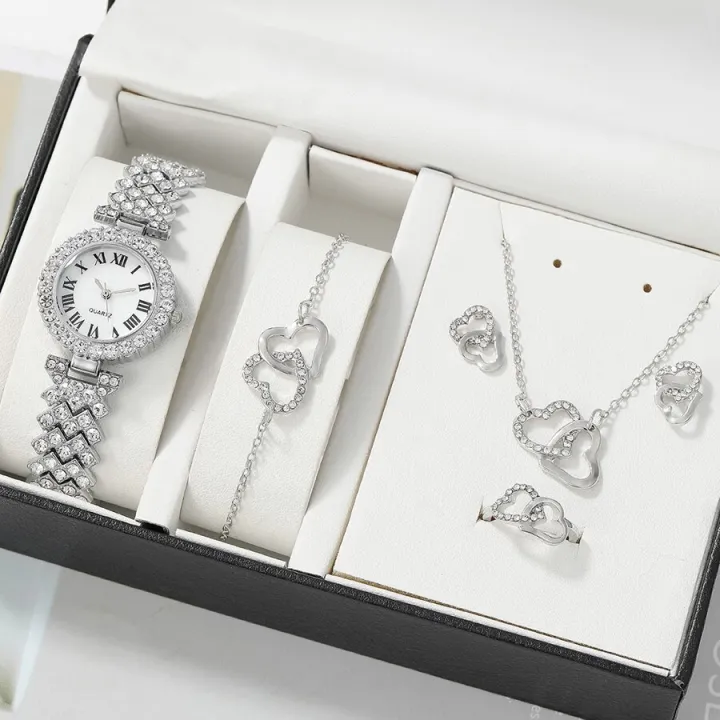 Luxurious%206pc%20Dainty%20Quartz%20Watch%20Heart%20Jewelry%20Set%20for%20Women%20-%20Stylish%20Rhinestone%20Watch%20with%20Double%20Heart%20Necklace%20Bracelet%20Earrings%20Ring%20-%20Image%201