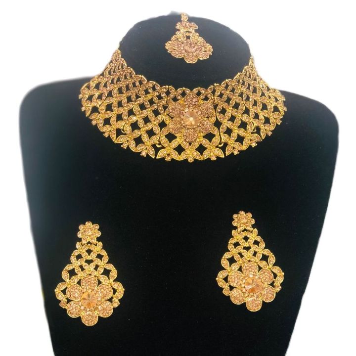 Luxury%20fashion%20Women%20Bridal%20%20Wedding%20Jewellery%20Multi-color%20Jewelry%20Set%20Elegant%20Fashionable%20Diamond%20Alloy%20Necklace%20+%20Earing%20Set%20+%20Maangtikka%20%20Necklace%20Set%20For%20Women%20-%20Image%201