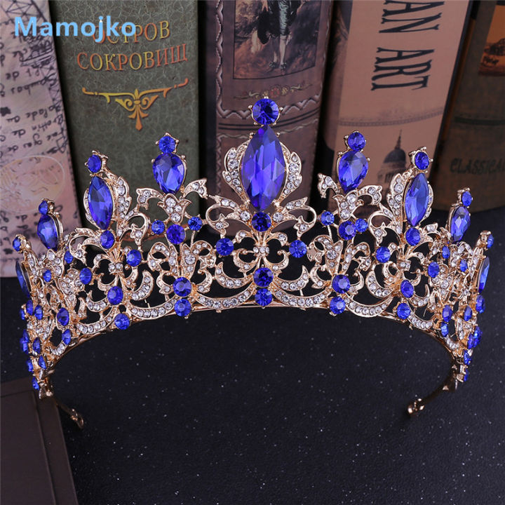 Mamojko Luxury Baroque Crystal Wedding Bridal Tiara Diamante Royal Blue Red Crown Pageant Prom Bride Hair Jewelry For Bridesmaid