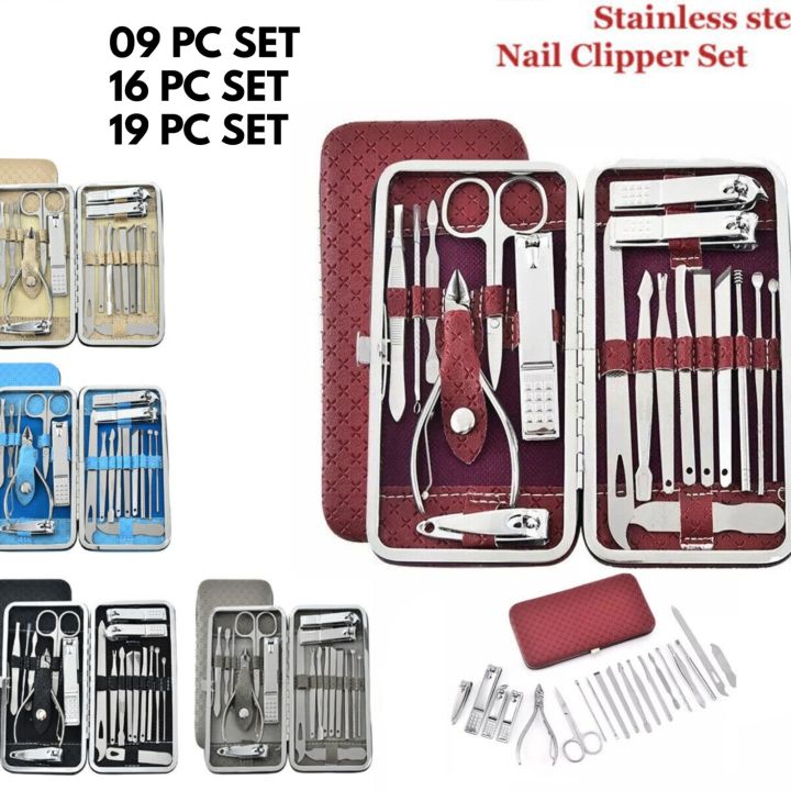 Manicure Set Stainless Steel Nail Cutter Fingernail Clippers Trimmer Eyebrow Scissor Ear Spoon Facial Care Manicure Manicure Beauty 19 PC Tool Kit