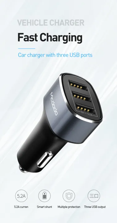 MCDODO%205V%205.2A%20Three%20USB%20ports%20car%20charger%20-%20Image%201
