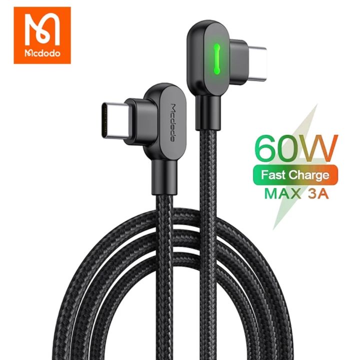 Mcdodo 60W Type C Cable For Xiaomi Huawei Samsung USBC PD 3A Fast Charging Data Sync Bend Cord Android Mobile Phone Charger Line