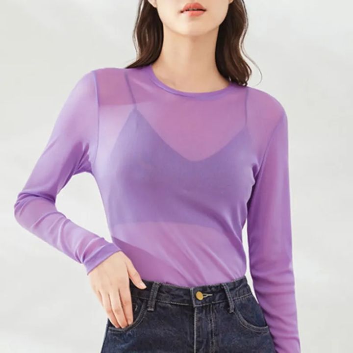 Mesh%20Undershirt%20Women's%20Inner%20Layer%20With%20Sun%20Protection%20Clothing%20Thin%20Transparent%20Top%20Spring%20Autumn%20Ice%20Silk%20Lace%20Gauze%20T-Shirt%20-%20Image%201