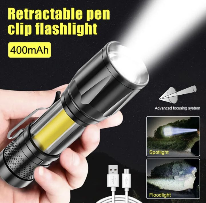 Mini Flashlight COB LED Torch Light Tactical Rechargeable Light Bright Super Lamp USB Zoomable Battery UV Zoom Handheld With Build-in Battery Outdoor 120561164 Flash_LK