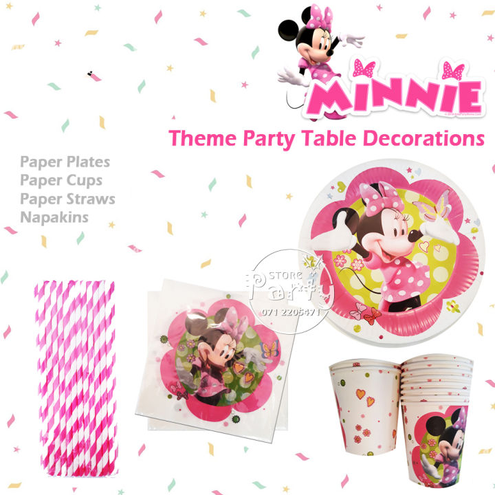 Minnie Mouse Theme Party tableware supplies Paper cups, Plates, Straws, Napkins