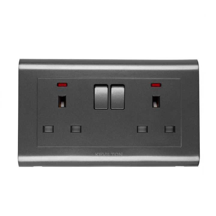 Modular Black 13 Amp Twin Socket Outletwith Neon