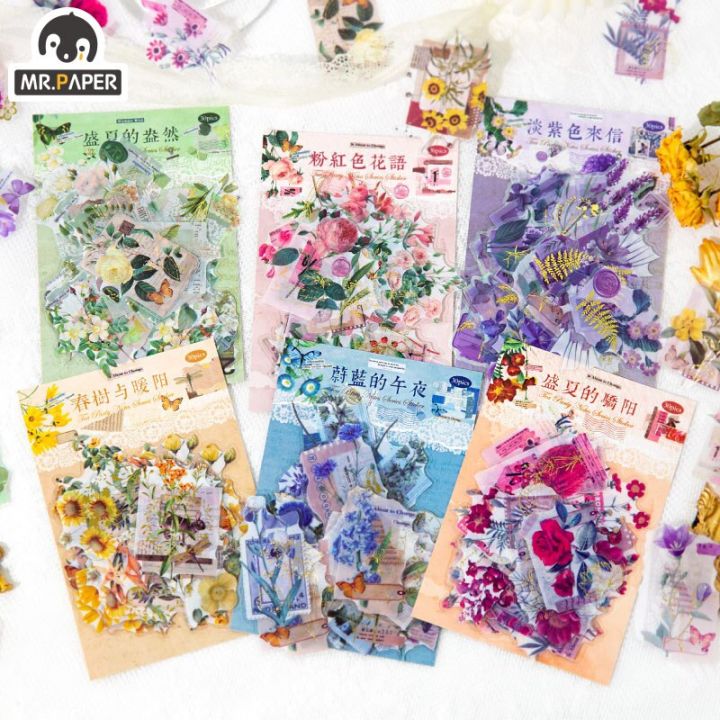 Mr.%20Paper%2030pcs/%20Pack%20PET%20Waterproof%20Stickers%20Gilding%20Flowers%20Series%20Literature%20Stickers%20Aesthetic%20Decoration%20Stationery%20-%20Image%202