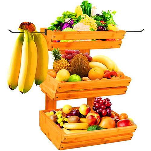 Mr Wood 3 Tier Wooden Vegetable Rack/ Teak(තේක්ක) Food Storage Rack/ Fruit Basket for Dream Kitchen