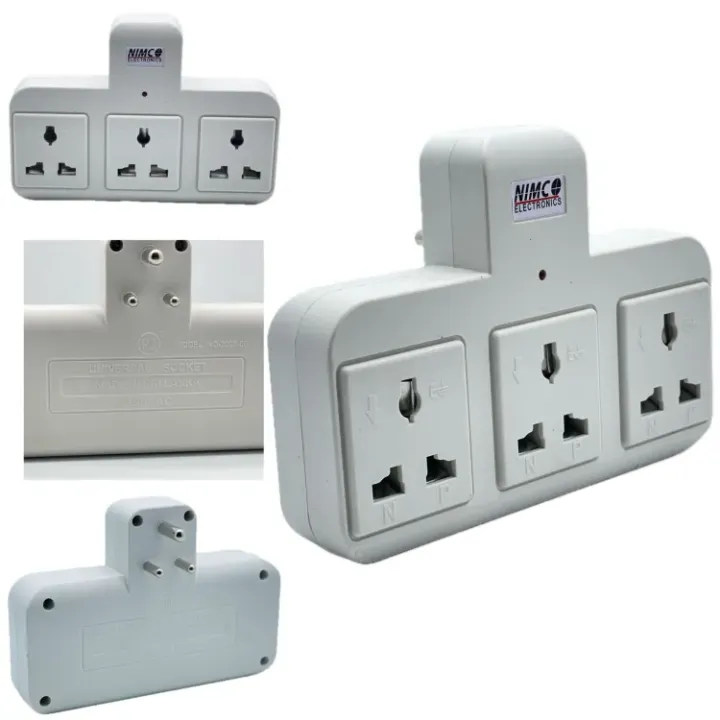 Multi plug wall Socket adapter - 5A Multi Socket 3 way Universal type outlet - Travel adapter