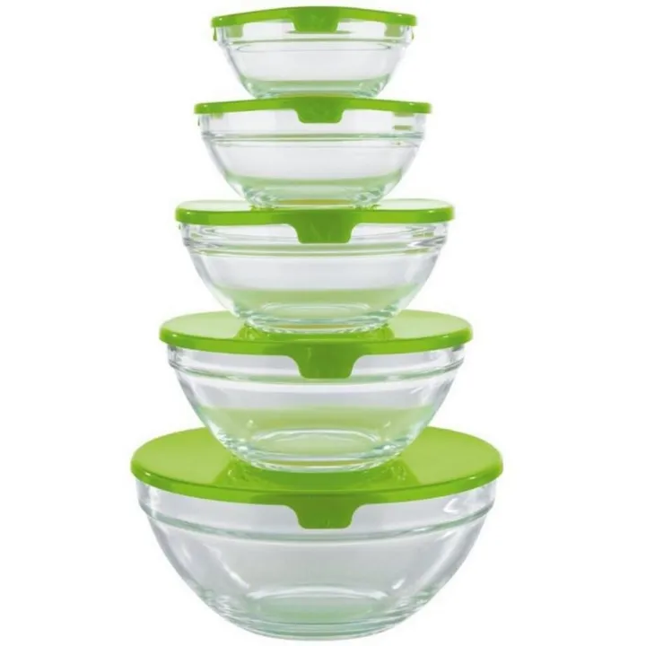 Multicolor 5 Pcs Glass Bowl Set With Plastic Lids Food Storage Serving