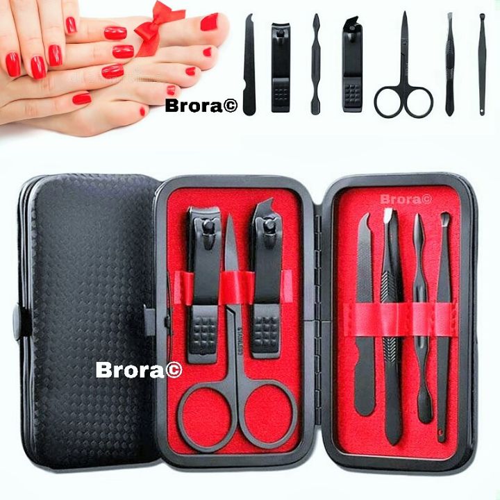 Nail%20Clipper%20Set%20Manicure%20Pedicure%20Kit%207%20In%201%20Black%20Stainless%20Steel%20Professional%20Grooming%20Kit%20with%20Black%20Leather%20Travel%20Case%20-%20Image%201