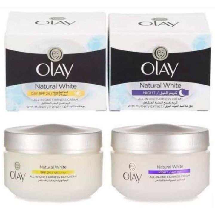 Natural White Fairness Olay Night Cream 50g And Olay Day Cream SPF, 50g 50g X 2 (2 in 1pack) odnc