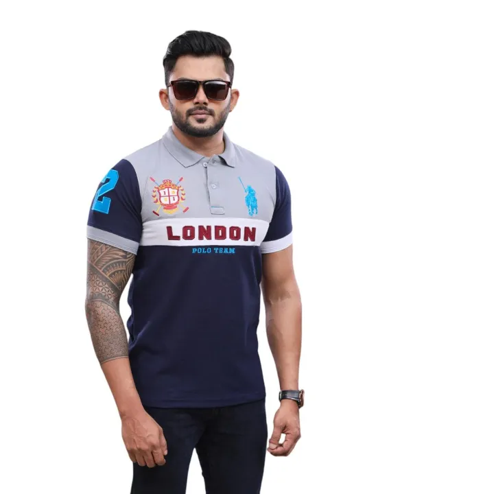 Navy Blue, Ash Mixed T shirt for Men's | LONDON | 220GSM