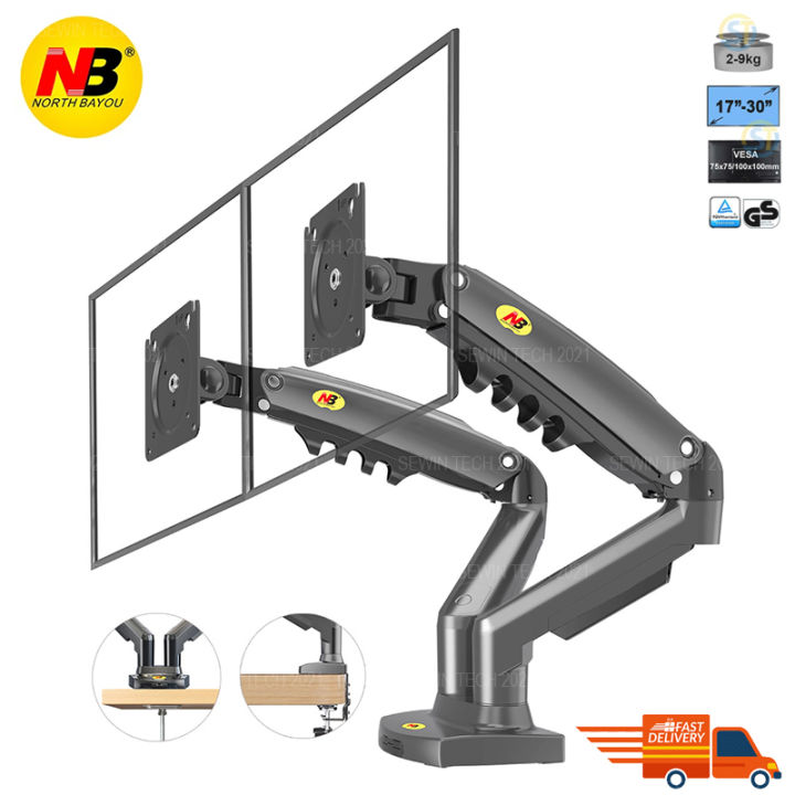 NB F160 Dual Monitor Arm Gas Spring 360 Degree Desktop 17"-30" Ergonomic Dual Arm Monitor Mount Bracket