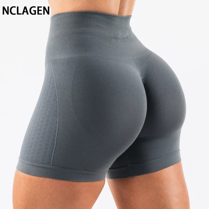 NCLAGEN Women's Seamless Gym Yoga Shorts Jacquard Fitness Leggings Workout Squat Proof High Waist Sports Tights Butt Scrunch