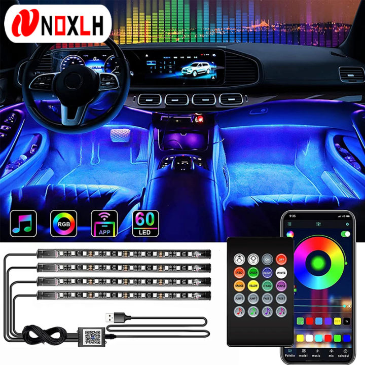Neon LED Car Interior Ambient Foot Strip Light Kit Accessories RGB Backlight Remote App Music Control Auto Decorative Lamp