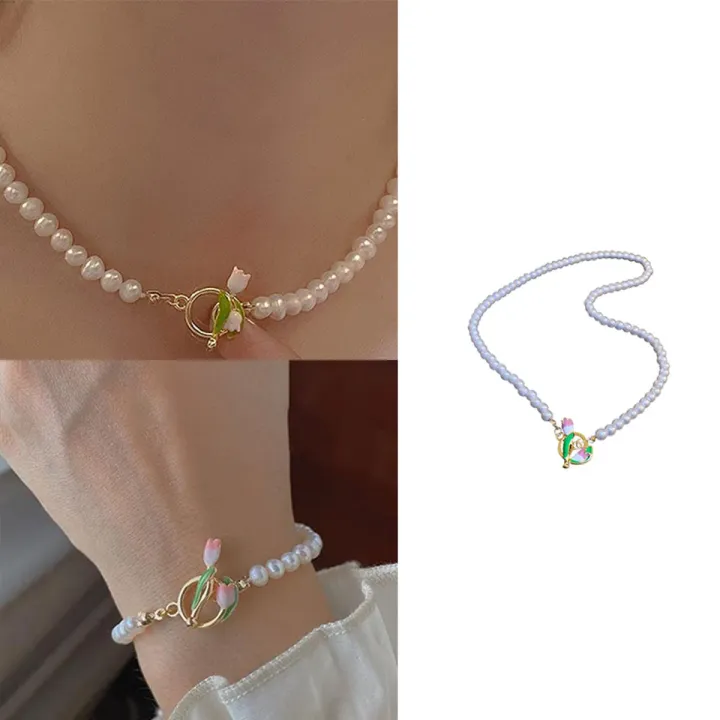 New 2025 Design 2023 Elegant Pearl Tulip Flower Necklace Pendant for Women Party Jewelry Set