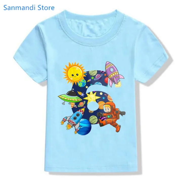 New 3th-9th Birthday Gift for Boys Tshirt Astronaut Satellite Sunshine Graphic Print T Shirt Kids Clothes Summer Blue T-Shirt