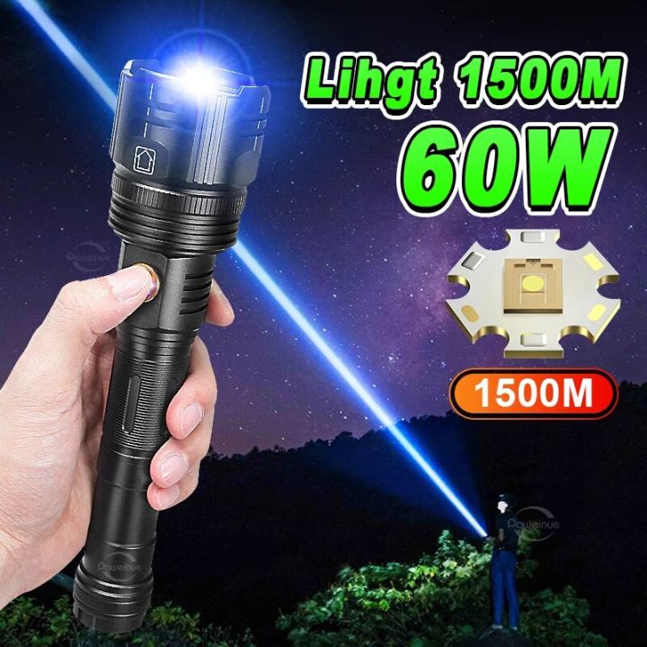 New 60W Zoom 1500m High Power Led Flashlights Rechargeable Flashlight With Usb Charging Ultra Powerful Torch Tactical Lantern