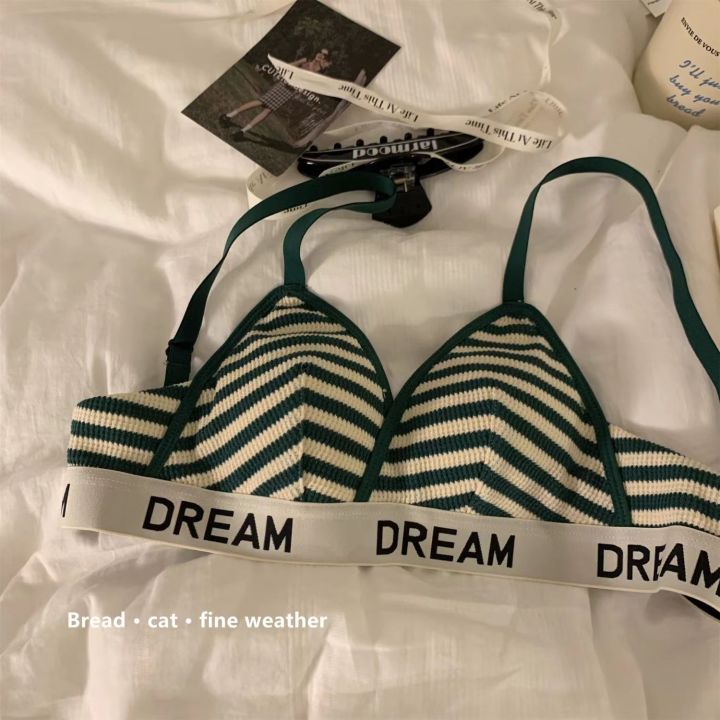 New American High School Student Girl Push up and Anti-Sagging Bra Stripe Lingerie Set