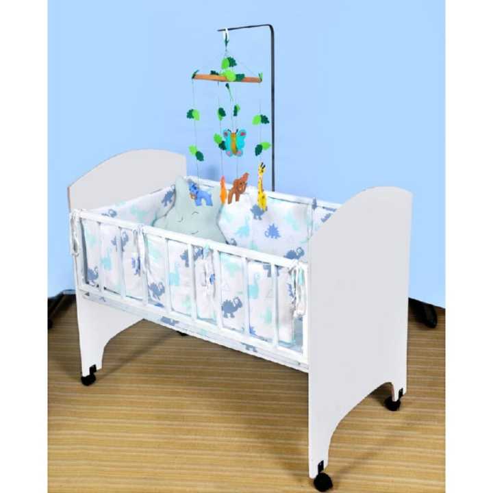 New Born Baby Adjustable Cot Base With Bumper Wood & Metal