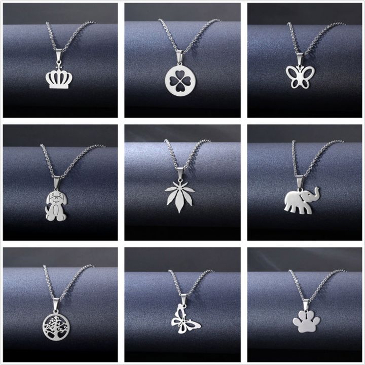 New Fashion 304 Stainless Steel Necklace Butterfly Dolphin Cat Heart Pendant For Women Men Necklace Jewelry 45cm long, 1 Piece