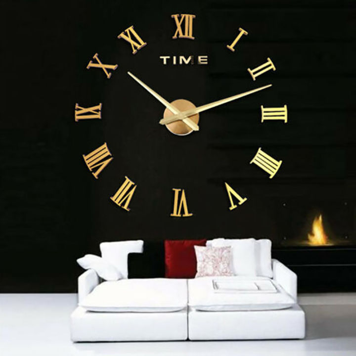 NEW%20Gold%20Roman%20numerals%20designer%20wall%20clock%20wall%20tatoo%20XXL%20in%203D%20new%20collection%20-%20Image%201