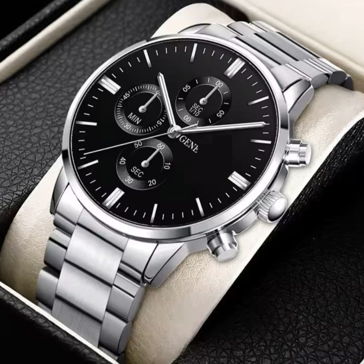 New LX217 Stainless Steel Luxury Men Watch Quartz Analog Business Chain Casual Wrist Dial GenX Watches For Boys Gents Silver Mix