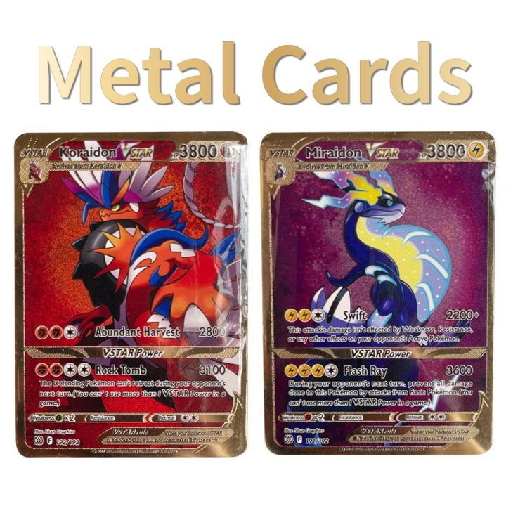 New Pokemon Anime Scarlet Violet Charizard Miraidon Koraidon Gold Black English Metal Cards Vmax Mega GX Game Collection Cards