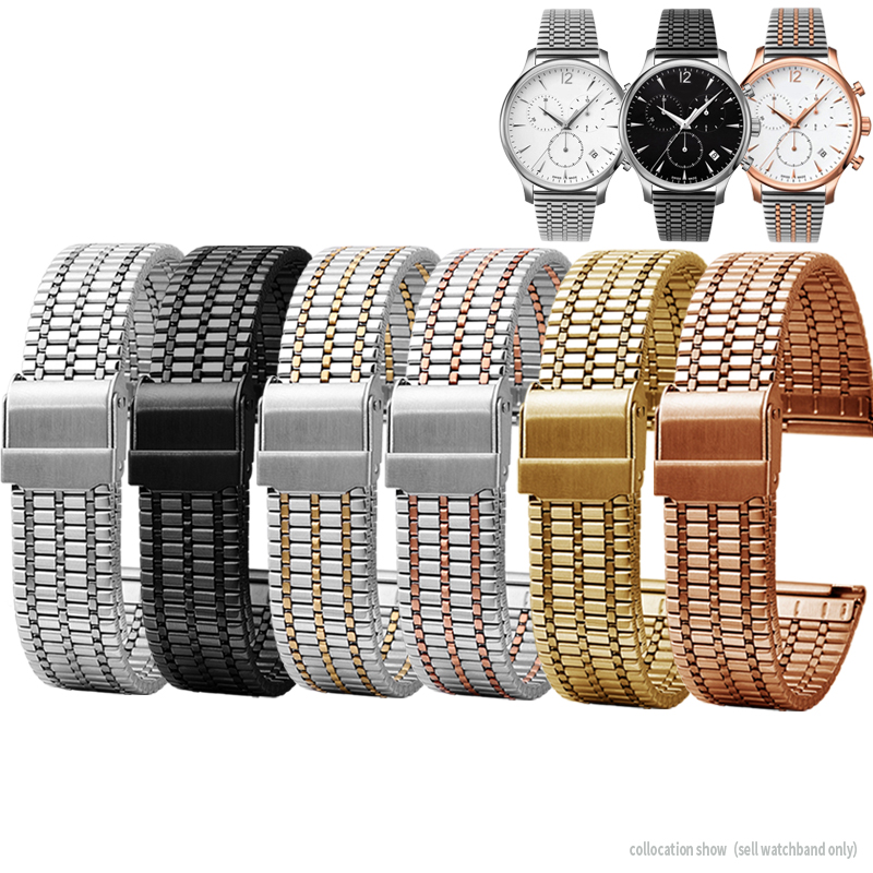 New Quick Release Spring Bar Stainless Steel Watch Strap 18 20 22mm Safety buckle Men Watchband 7 Beads Bracelet Black Rose Gold