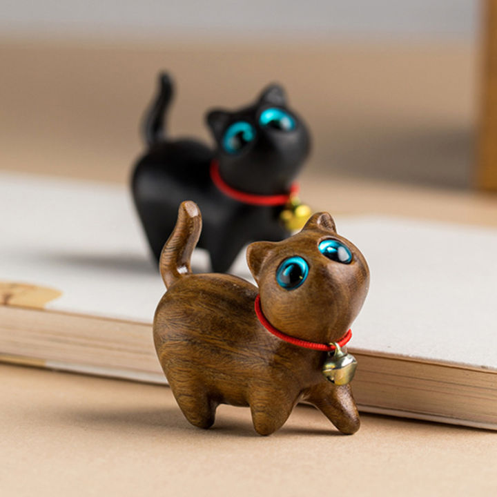New%20Sandalwood%20Hand-Carved%20Cat%20Wooden%20Mini%20Animal%20Doll%20Desk%20Decoration%20Statues%20Crafts%20Xmas%20Wooden%20Bell%20Cat%20-%20Image%201