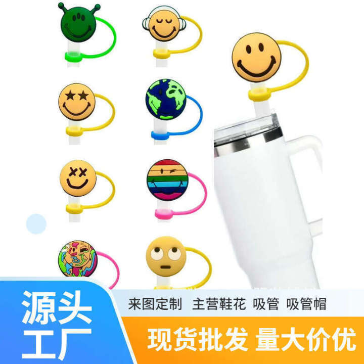 New Straw Cap Emoji Theme 10mm Dustproof Plug Silicone Protective Cover Thermos Cup Accessory