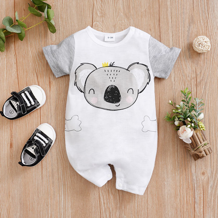 Newborn Baby Clothes Boy Grey koala print Jumpsuit Summer Short Sleeve Romper 0-18 month Infant Toddler Pajamas One Piece Outfit
