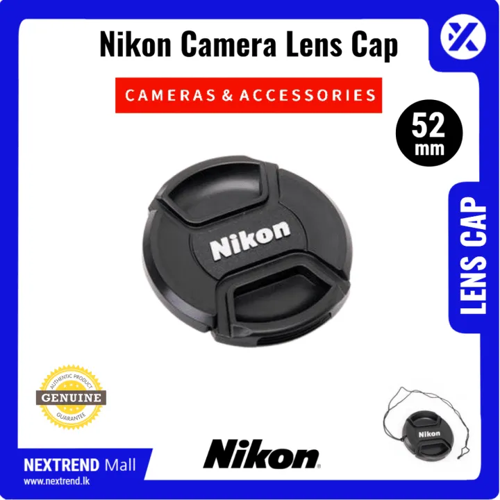 Nikon Lens Cap 52mm with Nikon Logo Center Pinch Snap-on Front DSLR SLR Lens Cap with Safety Cord - Protect Safe Dustproof Scratchproof Canon Nikon Yongnuo Godox Video Photo Videography Photography Indoor Outdoor Replacement 52 mm