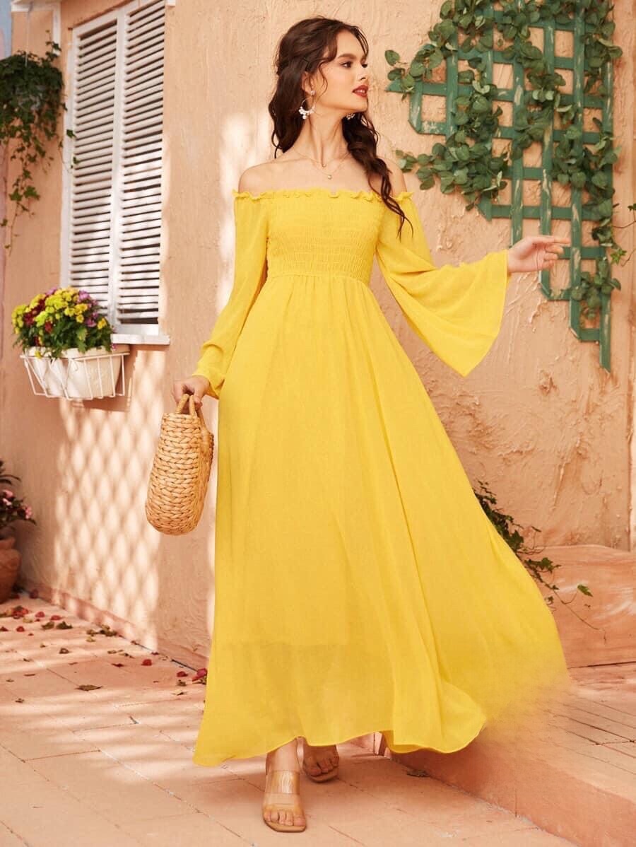 Off Shoulder Long Sleeve Frock For Party And Casual Wear