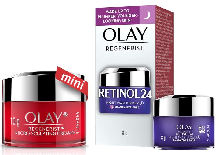 Olay%20Night%20Cream%20mini:%20Regenerist%20Retinol%2024%20Moisturiser%20for%20hydrated%20plump%20smooth%20skin,%208%20g%20&%20Olay%20Day%20Cream:%20Regenerist%20Microsculpting%20Mini%20Moisturiser%20(non%20SPF),%2010g%20FROM%20INDIA%20(SAM)%20-%20Image%201