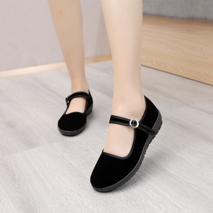 Old Beijing Cloth Shoes Women's Thin Shoes Casual Work Shoes Women's Black Hotel Work Shoes Flat Dancing Mom Shoes Non-Slip